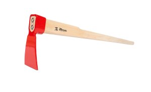 Lakovaná plochá motyka s dřevěno násadou. Šířka 160 mm, výška okopu 95 mm, délka celkem 1200 mm.