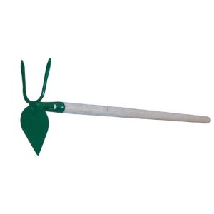 násada: 100 cm Ruční okopávačka ve tvaru srdíčka, se dvěma hroty pro odstraňování plevele a kypření půdy na zeleninovém záhonu okolo rostlin.
