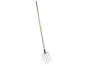 Rycí vidle s dřevěnou násadou a plastovou ručkou tvaru Y pro příjemnější práci.