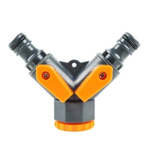 rozdvojka s 2 ventily, ENPRO adaptér pro dvě rychlospojky, s 1/2" a 3/4" vnitřním závitem umožňuje jak rozdvojení hadic tak také uzavření přívodu vody do obou jeho částí vyrobeno z kvalitního plastu
