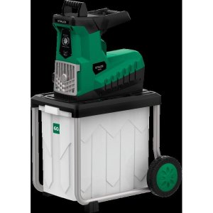 Elektrický tichý drtič větví, 92 dB, výkon 2300 W, 40 ot./min, průhledný sběrný koš 60 l.