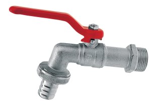 Zahradní kulový kohout s pákou 3/4" x 1" šroubení pro hadici: 3/4" připojovací matice: 1" Zahradní kulový kohout s pákou má připojovací šroubení pro hadici 3/4" (připojovací matice 1").