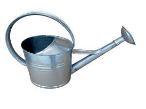 Zinková konev s kropítkem objemu 5 litrů s velkým uchem.