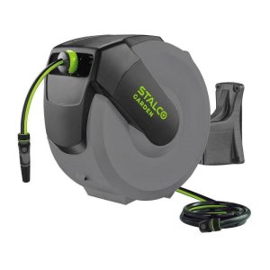 kryt z odolného polypropylenu blokovací mechanismus hadice při odvíjení, regulace rychlosti navíjení automatické vedení hadice nastavitelný zámek hadice nástěnný držák otočný o 180° úchyt pro přenášení …