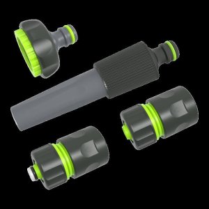 Sada s plastovou regulovatelnou pistolí a spojkami.