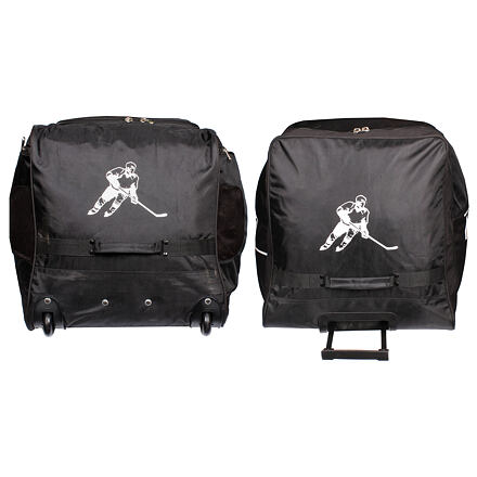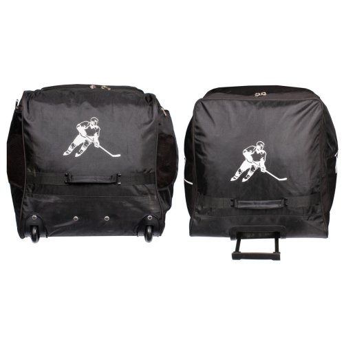 Hokejová taška s kolečky Merco Hockey Super Player SR je určena pro seniorské hráče hokeje či hokejbalu všech výkonnostních kategorií. Díky pogumovaným kolečkům s průměrem 6 cm a vysouvacímu madlu bude převážení kompletní hokejové výstroje na trénink či zápas úplná hračka. Taška je vyrobená z odolného nylonu, její dno je navíc zpevněné o dvě plastové lišty pro delší životnost. Taška Super Player SR nabízí jednu hlavní kapsu s širokým "U" zipem pro snadný přístup, na bocích jsou integrované boční kapsy na brusle s odvětráváním pro rychlé schnutí a v přední části je navíc kapsa pro Vaše osobní věci a drobnosti. Pro snadnější a rychlejší manipulaci má taška také dvě boční nylonová poutka a dva delší popruhy pro přenášení v ruce nebo na rameni. Hokejová taška Super Player SR má rozměry přibližně 90 x 45 x 49 cm a hmotnost 4,5 kg.