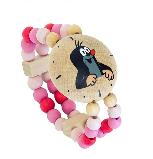 Dívčí dřevěné hodinky s obrázkem krtečka. Navlečeno na jemné gumičce. Nevhodné pro děti do 3 let. Obsahuje malé části. Výrobek je zdravotně nezávadný.