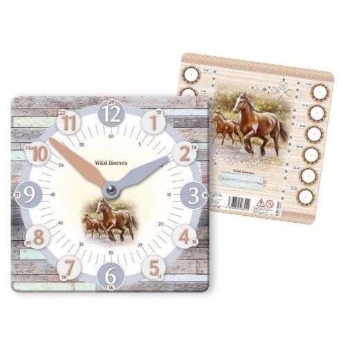 Papírové dětské hodiny na výuku Wild horses. <br> • obsahují ciferník se zvýrazněnými čísly 3, 6, 9 a 12 také čísla od 1 po 12 a minutové dělení s pohyblivými ručičkami <br> • zadní strana hodinek slouží jako učební pomůcka, do které mohou děti zakreslovat čas, který dostanou za úkol
