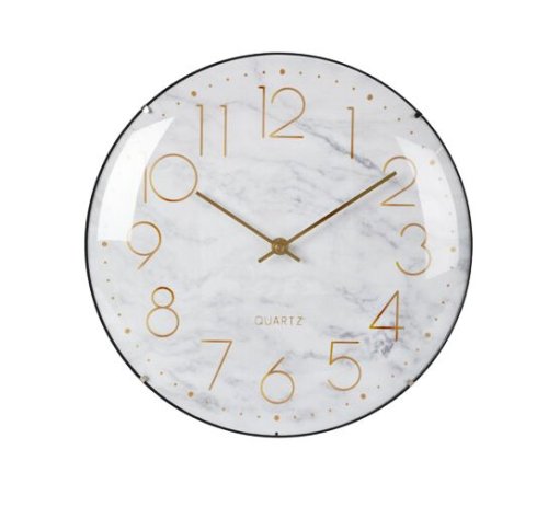 - nástěnné hodiny v mramorovém designu- určené k umístění na zeď- spolehlivý hodinový strojek QUARTZ- postačí pouze jedna tužková baterie- velké zlaté číslice a prosklený ciferník- napájení: 1x AA baterie …