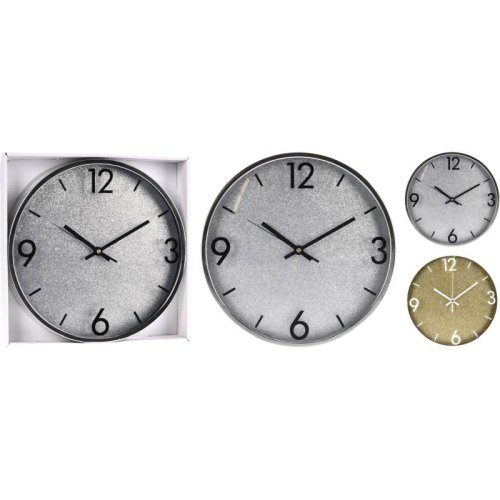 Kovové nástěnné hodiny s ciferníkem s třpitkami - galvanicky pokovený rámeček - napájení pouze na 1 tužkovou aa baterii (není součástí hodin) - dobře čitelný ciferník - rozměry: 31 x 5 cm - barva: stříbrná a zlatá