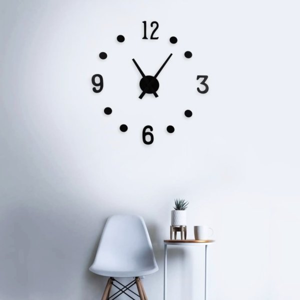 nástěnné samolepící hodiny- jednotlivé části hodin si nalepíte sami dle svého vkusu- libovolně tak určíte výsledný průměr a velikost hodin- vyrobeno z dřevěné desky MDF- rozměry:- malá ručička 23,5 cm- velká ručička 30 cm- čísla 10 cm- puntíky 4 cm