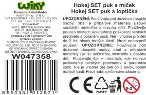 Hokej set puk a míček. Obsah balení - 2x hokejka (délka hokejky 83 cm), 1x míček (5,6 cm), 1x puk (6,3 cm).