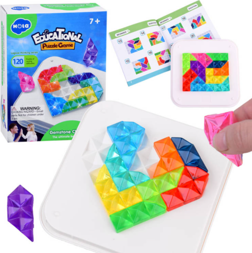 Deska se skládá ze dvou stran: na jedné straně je vyobrazeno srdce a na druhé čtverec. Dítě si vybere se kterou deskou chce hrát. Přiložená brožura obsahuje 120 zadání rozdělených podle obtížnosti. Úrovně jsou označeny barvami a hvězdičkami. Vyberte si jedno ze zadání a nachystejte diamanty na hrací plochu podle obrázku. Úkolem dítěte je uspořádat dílky tak, aby byla obsazena všechna políčka na hrací desce. Během hry nelze zadané diamanty přesouvat ani odstraňovat z hrací plochy. Pokud si dítě nebude vědět rady, druhá polovina brožury obsahuje řešení všech zadání.