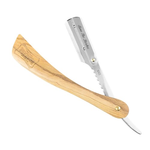 Shavetta je vhodná jak do holičství, tak i pro ty, kteří si netroufají na břitvu. Dřevěná rukojeť je zdobená logem značky a dobře se drží.