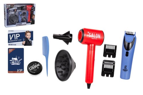 Styl a péče nejsou jen pro holky! Tento kosmetický set pro kluky je skvělým úvodem do světa osobní hygieny a zábavného upravování. . Vhodné jako dárek, na cesty nebo do dětského pokoje – prostě cool sada pro kluky, kteří se rádi cítí upravení. Obsahuje funkční fén, strojek na vlasy, hřeben, nástavce, členskou kartu do salonu. Velikost fénu 20cm. 2xAAA baterie do strojku nejsou součástí, 3xAAA baterie do fénu nejsou součástí. Vhodné pro děti od 3 let.
