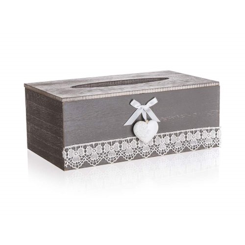 Krabička s krajkou na papírové kapesníčky 24 x 14,5 x 9,5 cm LACEWORK, oválný otvor je vybavena otvíracím víkem na doplnění kapesníčků. Papírové kapesníčky vždy po ruce v designové krabičce.