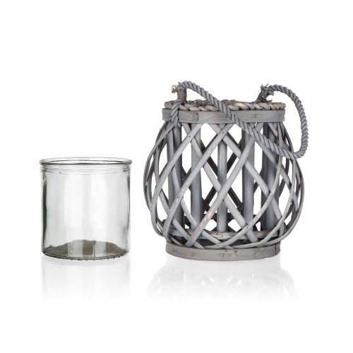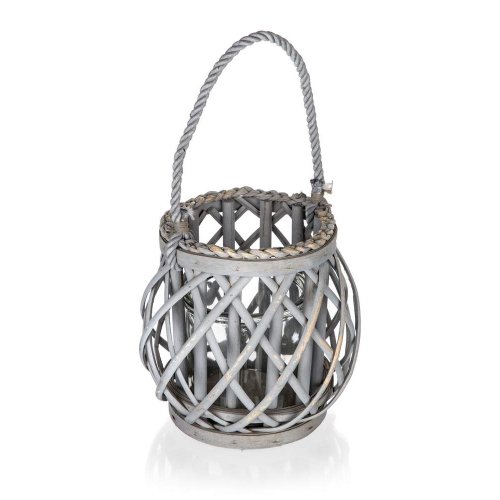 Svícen závěsný ze skla a vrby o rozměru 16 x 20 cm. Kombinace skla a vrby působí příjemným dojmem v každé domácnosti.