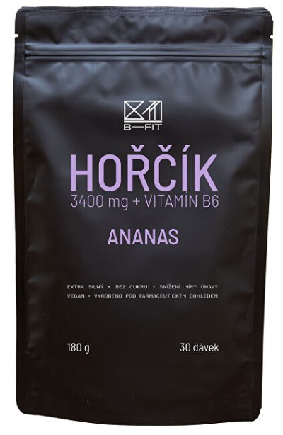 Hořčík 3400 mg + Vitamín B6 ananas vám poskytne denní dávku magnesia – hořčíku a vitaminu B6, které pomáhají snížit míru únavy a vyčerpání, podporují normální psychickou činnost a normální činnost nervové soustavy. Upozornění: Ukládat mimo dosah malých dětí. Výrobek není určen jako náhrada pestré stravy. Dodržujte doporučené dávkování. Výrobce neručí za škody, vzniklé nevhodným použitím nebo skladováním. Dávkování: Nejvyšší doporučenou denní dávkou je 6 g (2 čajové lžičky) přidaných do 250–300 ml vody. Doporučujeme užívat v dopoledních a odpoledních hodinách či před fyzickou námahou. Nedoporučujeme užívat před spaním. Nepřekračujte doporučenou denní dávku.