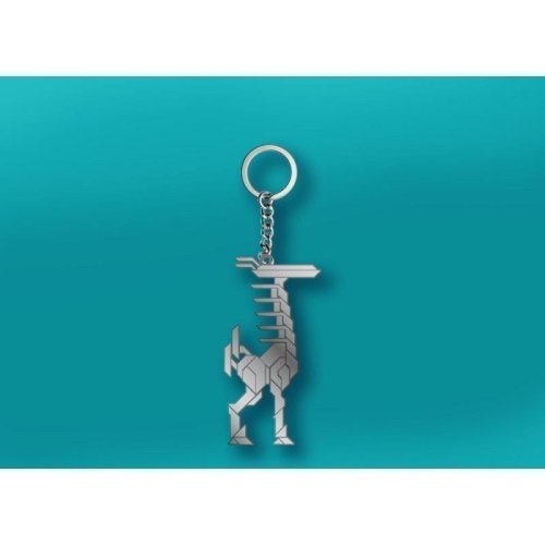 Kovová klíčenka s licenčním motivem ze hry Horizon: Forbidden West a kovovým očkem na zavěšení.