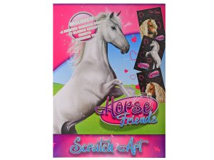Škrabací papírky patří mezi nejoblíbenější výtvarné hračky. Pomocí přiloženého pera se seškrabuje černý povrch z barevného pozadí. Díky tomu vznikne krásný efekt rytiny. Balení obsahuje 16ks Horse Friends škrabacích papírků.
