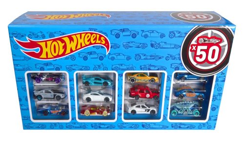 Auta Hot Wheels® jsou skvělou odměnou za dobře odvedenou práci! Každé z 50 vozidel v této základní kolekci automobilů Hot Wheels® je jednotlivě zabaleno a vyznačuje se skvělým dekorem, což z něj dělá dokonalý materiál pro každou příležitost. Pro dárkové tašky, party laskavosti nebo jedno speciální dítě je tento balíček dokonalou startovací sadou a je dodáván se značkovým boxem Hot Wheels® pro snadnou přenosnost. Barvy a dekorace se mohou lišit.