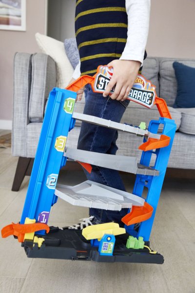 Závodění s tvými oblíbenými angličáky Hot Wheels je sice nekonečné, ale když je čas skončit, zaparkuj auťáky do této parádní garáže!