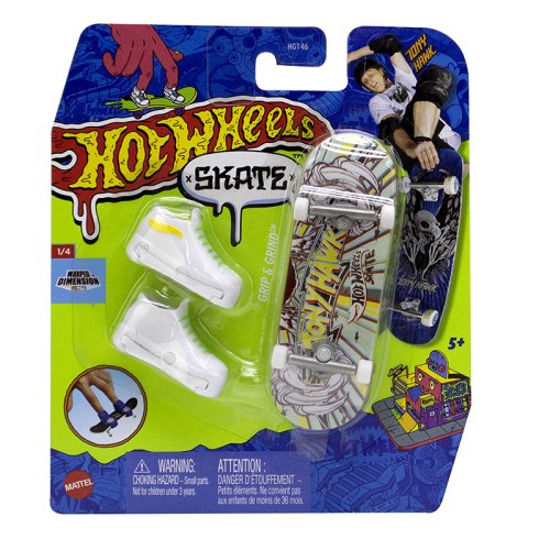 Vrhni se do akce s touto skvělou novinkou Fingerboard a boty od Hot Wheels®. Hot Wheels® a legenda skateboardingu Tony Hawk se spojili, aby vytvořili epickou kolekci fingerboardů, která je jako stvořená pro skvělé kaskadérské kousky a špičkové pohyby. Každý kompletně sestavený fingerboard Hot Wheels® je dodáván s párem stylových, odnímatelných skate bot, které jsou navrženy tak, aby udržely konečky prstů na místě, když se učíte shredovat a dělat ollie jako profesionál. Každý fingerboard má jedinečný a cool design, že je děti budou chtít sesbírat všechny. Každý se prodává samostatně v závislosti na dostupnosti. Barvy a provedení se mohou lišit.