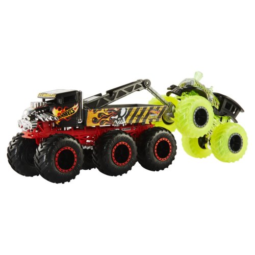 Hot Wheels® Monster Trucks Náklaďáčky táhnou velké osobnosti na šesti kolech za velkolepými dobrodružstvími. Každý model náklaďáku zachycuje styl a osobnost oblíbené postavy nebo příšery z Monster Trucků v měřítku 1:64. Když se k tomu přidá šest masivních kol, může tato souprava převážet i další Hot Wheels Monster Trucky, a to buď na tažném háku, nebo na plošině! Další nákladní vozy se prodávají samostatně. Barva a provedení dekorací se mohou lišit.
