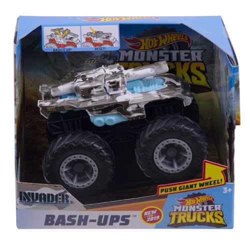 Rozdrť své protivníky s touto kolekcí monster trucků od Hot Wheels®! Všechny trucky jsou dodávána v měřítku 1:43 a samozřejmostí jsou typická OBŘÍ kola. Tyto monster trucky se neohroženě zakousnou svými gigantickými pneumatiky do bahna, které začnou rozstřikovat do všech stran! Monster trucky do sebe mohou všemi možnými způsoby narážet a bourat. A co by to bylo za zábavu bez pomačkaných plechů. Jakmile tvůj monster truck nabourá do svého protivníka nebo do překážky, odskočí mu „rozbité“ části karoserie. Nabourej, vrať vozidlo do původního stavu a znovu do akce! Na každém balení zároveň najdeš statistiku konkrétního vozidla včetně jména, typu vozu, výkonu, jedinečného způsobu útoku a motorizace.