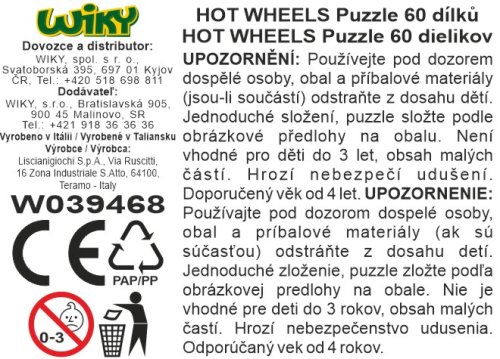HOT WHEELS Puzzle. Rozměr složeného obrázku 50x35 cm. Balení obsahuje 60 dílků.
