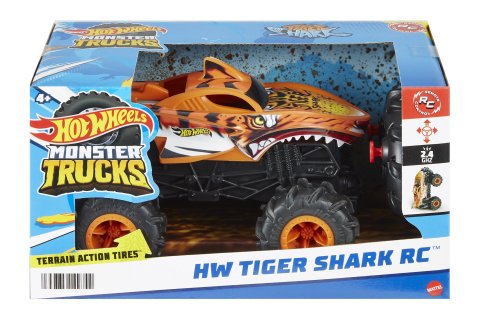 S dálkově ovládaným truckem Tiger Shark v měřítku 1:24 se můžete pustit do úžasné akce s Hot Wheels® Monster Trucks! Tento nezkrotný dravec se dokáže prodírat různými překážkami díky terénním akčním pneumatikám a pohonu všech kol. Spusťte žraločí kousání zuby, když rozbíjí a naráží do všeho, co mu stojí v cestě. Barvy a vzhled výrobku se mohou lišit. Doporučený věk 4+