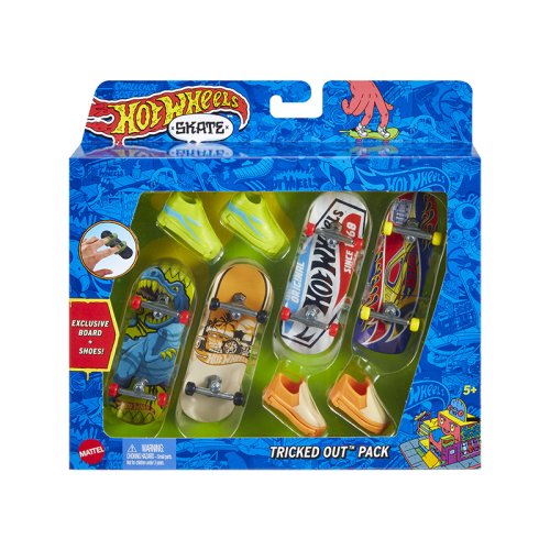 Předvádějte drsné skoky s tímto setem 4 ks fingerboardů a skate bot. Hot Wheels® a legenda skateboardingu Tony Hawk se spojili, aby vytvořili epickou kolekci fingerboardů, které vypadají skvěle při broušení railů a provádění ollies. Set obsahuje čtyři různé, úžasně stylizované a kompletně sestavené fingerboardy spolu se dvěma různými páry skate bot, které lze střídavě používat se všemi fingerboardy. Skate boty pomáhají dětem získat cit při zvládání kaskadérských kousků a salt. Každý set obsahuje jeden exkluzivní fingerboard a pár skate bot. Každý set se prodává samostatně v závislosti na dostupnosti. Barvy a vzhled výrobku se mohou lišit.