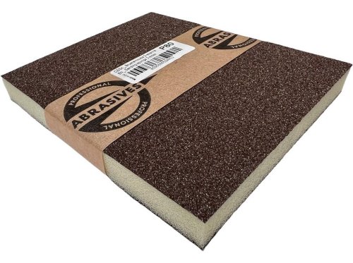 Dvoustranná brusná houba určena pro ruční broušení dřeva, tmelů, laků, barev a kovů. Velmi flexibilní pěnová položka, dokonale potažena prémiovým korundovým zrnem, odolná vůči roztržení, přizpůsobivá všem povrchům, hranám, rohům a profilovým obrobkům. Brusné houby PROFESSIONAL ABRASIVES, poskytují jednotný vzor povrchu po celou dobu broušení.