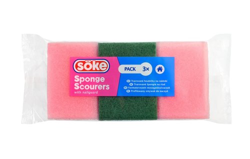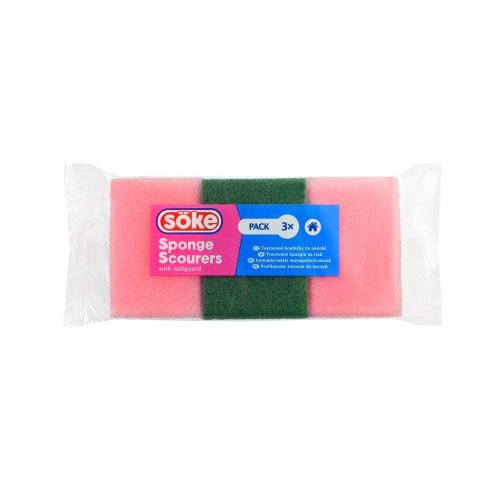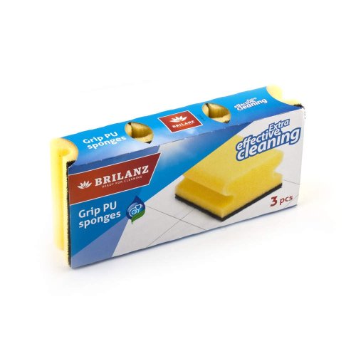 Sada houbiček na nádobí BRILANZ frézované, účinné mytí talířů a hrnců se zelenou drátěnkou.