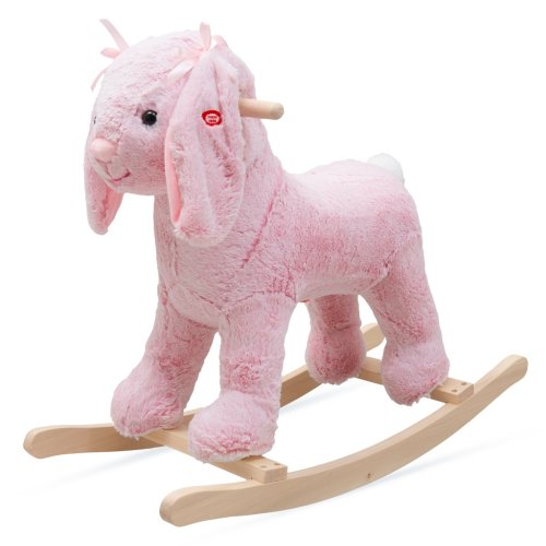 Stabilní dřevěné lyžiny a úchyty zajišťují bezpečné houpání, zatímco melodie aktivovaná tlačítkem rozvíjí sluch a přináší dětem spoustu radosti. Králíček má pohodlné sedátko bez opěrky – ideální pro starší batolata, která už umí udržet rovnováhu.