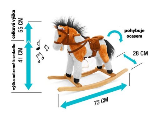 Houpací koník Milly Mally s mnoha vychytávkami. Koník je balen samostatně v krabici, která může být použitá i jako dárkové balení. Aktuálně jsou koníky bez čevené stuhy.<BR>- koník pohybuje ocáskem i tlamou a řehtá<BR>- příjemný plyšový materiál<BR>- koník má sedlo s třmeny, uzdu a dřevěné rukojeti<BR>- možnost demontáže houpacího rámu<BR>- baterie (3x AA) nejsou součástí hračky<BR>- nosnost do 30 kg<BR>Rozměry bez houpací lišty: 60x28x55 cm