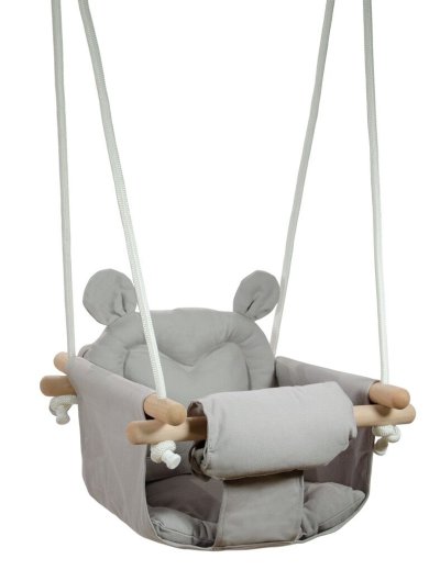 Komfort, bezpečí, zábava... méďa přesně ví, co spokojená miminka potřebují! Tato dětská houpačka nabízí nejen spousty hodin legrace, ale i aktivní odpočinek. Konstrukce z bukového dřeva a sedátko ze 100% bavlny zajišťují plné pohodlí a bezpečnost při houpání. Lana se 2 karabinami jsou výškově nastavitelná (až 180 cm). Konec lan je zakončen plastovou pojistkou proti jejich rozvázání. Díky tlumeným barvám a jednoduchému designu je houpačka také brilantním doplňkem do pokojíku! Hlavní vlastnosti: nosnost 60 kgvýškově nastavitelné lano (max. 180 cm)plastová pojistka proti rozvázání lanvyrobeno ze 100% bavlnyroztomilý design s medvídkem