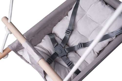 Houpačku využijete doma v pokojíčku nebo třeba i na kryté terase. Díky nastavitelnému lanu snadno přizpůsobíte výšku zavěšení vlastním potřebám. Houpačka je určená dětem od 6 měsíců a unese až 60 kg.