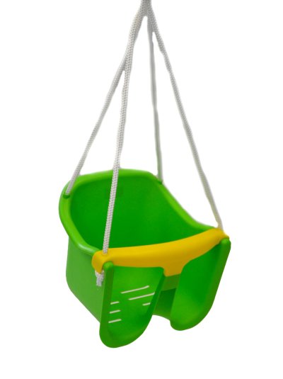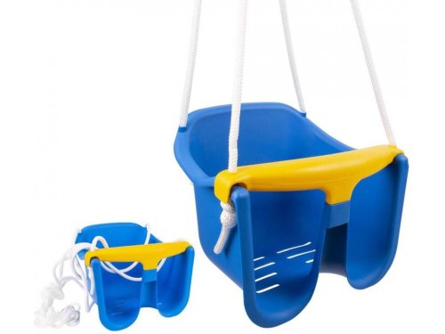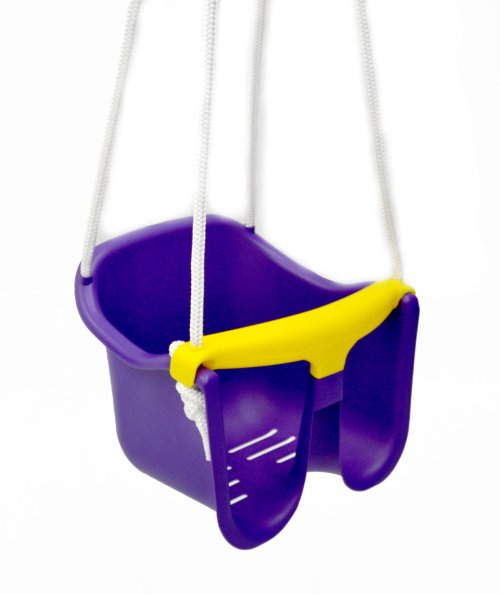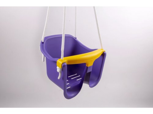 Varianta dětské závěsné houpačky. Vzhledem ke své konstrukci a bezpečnostní pojistce je určena pro velmi malé děti, ale maximálně do 3 let věku. Rozměr: velikost sedáku 25 x 17 cm, výška opěrátka 23 cm. Délka lan 100-170cm. V nabídce v barvě oranžové, zelené, modré a fialové.