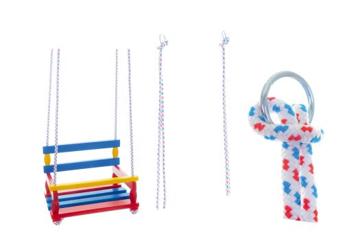 Krásná dřevěná barevná houpačka. Vhodná pro použití doma i na zahradě. Houpačka je bezpečná a stabilní. Rozměr sedáku 38x30cm. Nosnost houpačky 80kg. Vhodné pro děti od 3 let.