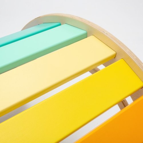 Houpačka je vyrobená s maximálním ohledem na bezpečnost, funkčnost, kvalitu a design. Montessori duhová houpačka stimuluje aktivní motorický vývoj vašeho dítěte, zlepšuje rovnováhu, zpevňuje svaly a nabízí několik možností využití. Velmi brzy se stane oblíbeným prvkem vašeho obývacího nebo dětského pokoje nejen pro hru a zábavu ale i pro relaxaci.