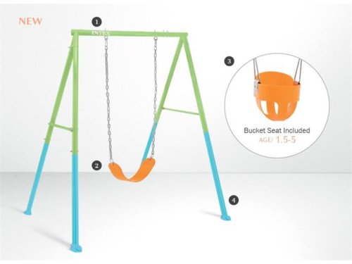 Houpací venkovní sestava 2v1 značky Intex obsahuje pestrobarevný flexibilní houpací sedák, který je zavěšený na spolehlivých řetězech potažených plastizolem na stabillní ocelové konstrukci. Dále sada obsahuje skořepinové houpací sedadlo pro menší děti od 1,5 roku, aby si houpačku mohli užít i ti nejmenší! Protože stabilita je základ celé houpačky je celá konstrukce vytvořena ve speciálním provedení A-rámy a speciálním kotvícím systém pro upevnění do země zajišťují ještě větší extra stabilitu. Sestavená houpačka má rozměry 1,80 x 2,54 x 2,11 m. Určené pouze pro venkovní použití pod dohledem dospělé osoby.