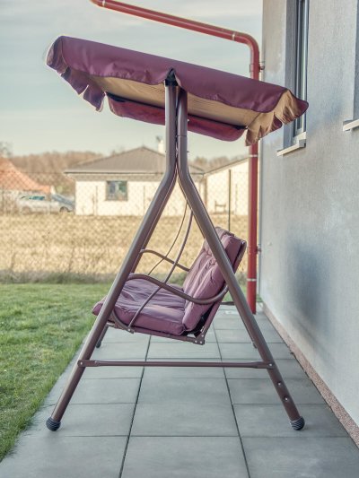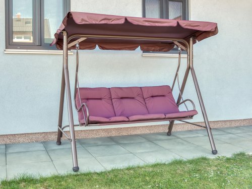 Pohodlná zahradní houpačka TARA, v hnědé barvě, s pevnou kovovou konstrukcí, ošetřená lesklým práškovým lakováním. Sedák je rozdělen do tří samostatných částí, které jsou zajištěny proti posunu. Na houpačce se pohodleně usadí 3 lidé. Sklon stříšky lze jednoduše nastavit a aretovat.