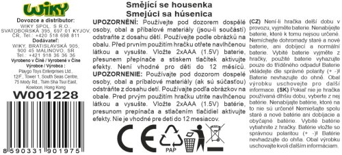 Housenka vydává veselé melodie a světelné efetky. Při chůzi otáčí a cvaká hlavou.