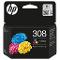 Originální inkoustová kazeta HP 308 přináší do vašeho domácího tisku spolehlivost a zářivé barvy. Tato tříbarevná náplň obsahující azurovou, purpurovou a žlutou barvu zajistí kvalitní a přesný tisk vašich dokumentů a fotografií. S výtěžností přibližně 120 stran máte perfektní řešení pro běžné tiskové úlohy v domácnosti nebo malé kanceláři.
