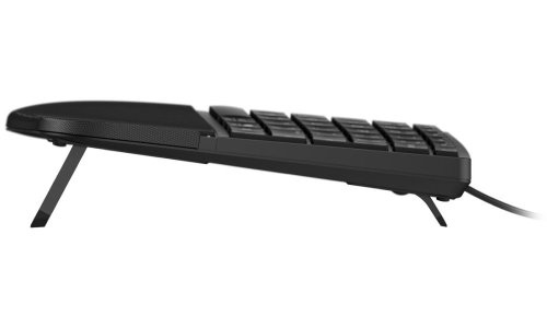 Ergonomická kabelová klávesnice navržená pro celodenní produktivitu a přirozené pohodlí při práci.