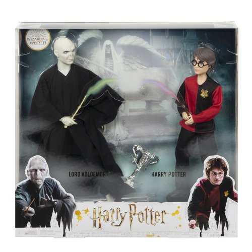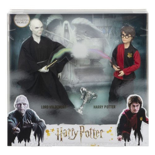 Připomeň si nejznámější scénu v boji dobra proti zlu, kdy proti sobě stanuli tváří v tvář Harry Potter™ a Lord Voldemort. V tomto balení na tebe čekají dvě panenky, které vznikly na motivy oblíbených filmů o mladém kouzelníkovi a jeho přátelích. Obě panenky jsou oblečeny do propracovaných oblečků, které jsou věrnou kopií oblečení, které tyto postavy oblékly při legendární bitvě. Součástí jsou i tematické doplňky, mezi kterými najdeš například Pohár tří kouzelníků a kouzelnické hůlky pro oba kouzelníky. Díky luxusnímu balení jsou tyto postavičky skvělým sběratelským kouskem, který udělá radost všem milovníkům těchto knih a filmů.