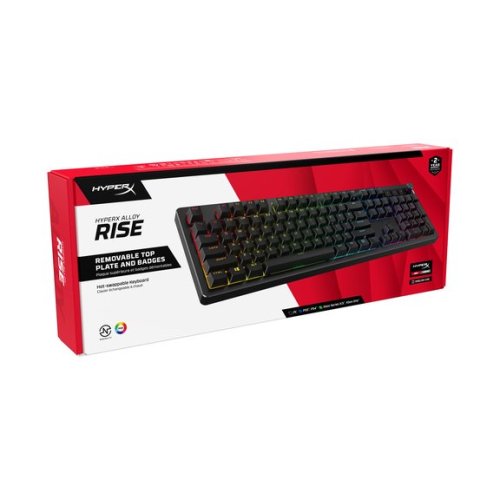 HyperX Alloy Rise je nejlépe přizpůsobitelná mechanická herní klávesnice na trhu, která posouvá customizaci na další úroveň. Můžete si nejen vyměnit spínače kláves za provozu, ale také magnetické horní desky, odznaky a další prvky. Všechna tato přizpůsobení jsou zabudována do pevného rámu klávesnice Alloy Rise a ultra citlivého 8k přenosu. Po vybalení z krabice je tato klávesnice vybavena předmazanými lineárními spínači HyperX, jejichž životnost je odhadována až na 80 milionů stisknutí kláves a také předinstalovanými klávesami HyperX PBT Keycaps. Získáte také vylepšený RGB zážitek díky senzoru okolního světla, který automaticky upravuje jas, 10 profilů klávesnice uložených přímo v klávesnici a výkonné přizpůsobení prostřednictvím softwaru HyperX NGENUITY. S klávesnicí HyperX Alloy Rise se přiblížíte o krok blíž ke svému cíli.