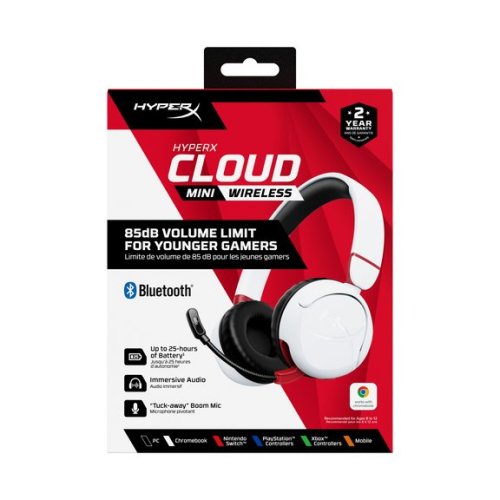 HyperX Cloud Mini je pohodlná bezdrátová náhlavní souprava určená pro začínající hráče. Doporučuje se pro věkovou kategorii 8-12 let, je lehká a má vhodné rozměry pro mladší hráče, a co je důležitější, je navržena tak, aby udržovala úroveň zvuku pod 85 dB. S výdrží baterie až 25 hodin je ideální pro lety nebo herní relace. Snadné párování přes Bluetooth poskytuje bezdrátovou svobodu, díky které se nebudete muset starat o zasekávání kabelů a nepořádek. Je vybaven zřetelným mikrofonem, který se dá sklopit, takže mladší hráči mohou chatovat s přáteli online, a když ho nepoužívají, lze ho schovat. Náušníky lze otočit, když je čas na přestávku, a jsou také skvělé pro snadnou přepravu nebo skladování. Sluchátka Cloud Mini Wireless lze snadno připojit k zařízením kompatibilním s technologií Bluetooth i k jakémukoli zařízení s 3,5mm konektorem. Ať už váš mladý hráč hraje na mobilu, Nintendu Switch, PlayStationu, PC, Chromebooku, Steam Decku nebo jinde, tato všestranná náhlavní souprava na to bude připravena.