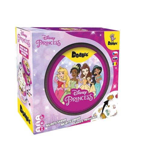 Rychlost, postřeh, reflexy! Dobble Disney princezny, to je 57 různých symbolů, 55 karet, 8 obrázků na kartě a každé dvě karty spolu mají společný jen jeden obrázek! Hra je kompletně v češtině i slovenštině a nabízí zcela unikátní zábavu. Děti zde hledají dva stejné obrázky na kartách při různých verzích hry (v pravidlech je popsáno celkem 5 her). Super jsou kulaté karty i jednoduchá pravidla vysvětlená doslova za pár sekund. Hra je určená především pro děti, ale i jejich rodiče - zkrátka pro všechny, kteří se chtějí pořádně bavit a nemají čas pročítat dlouhá pravidla. Plechová krabička zaručuje bezpečí karet a jednoduše umožňuje mít hru vždy u sebe. Vyzkoušejte i Vy postřehový fenomén Dobble a jistě budete překvapeni, jak i tak jednoduchá hra může být zábavná! V pravidlech naleznete popsaných všech 57 různých symbolů. Obsah balení je 55 karet v plechové krabičce a 1 česká, slovenská a rumunská pravidla.